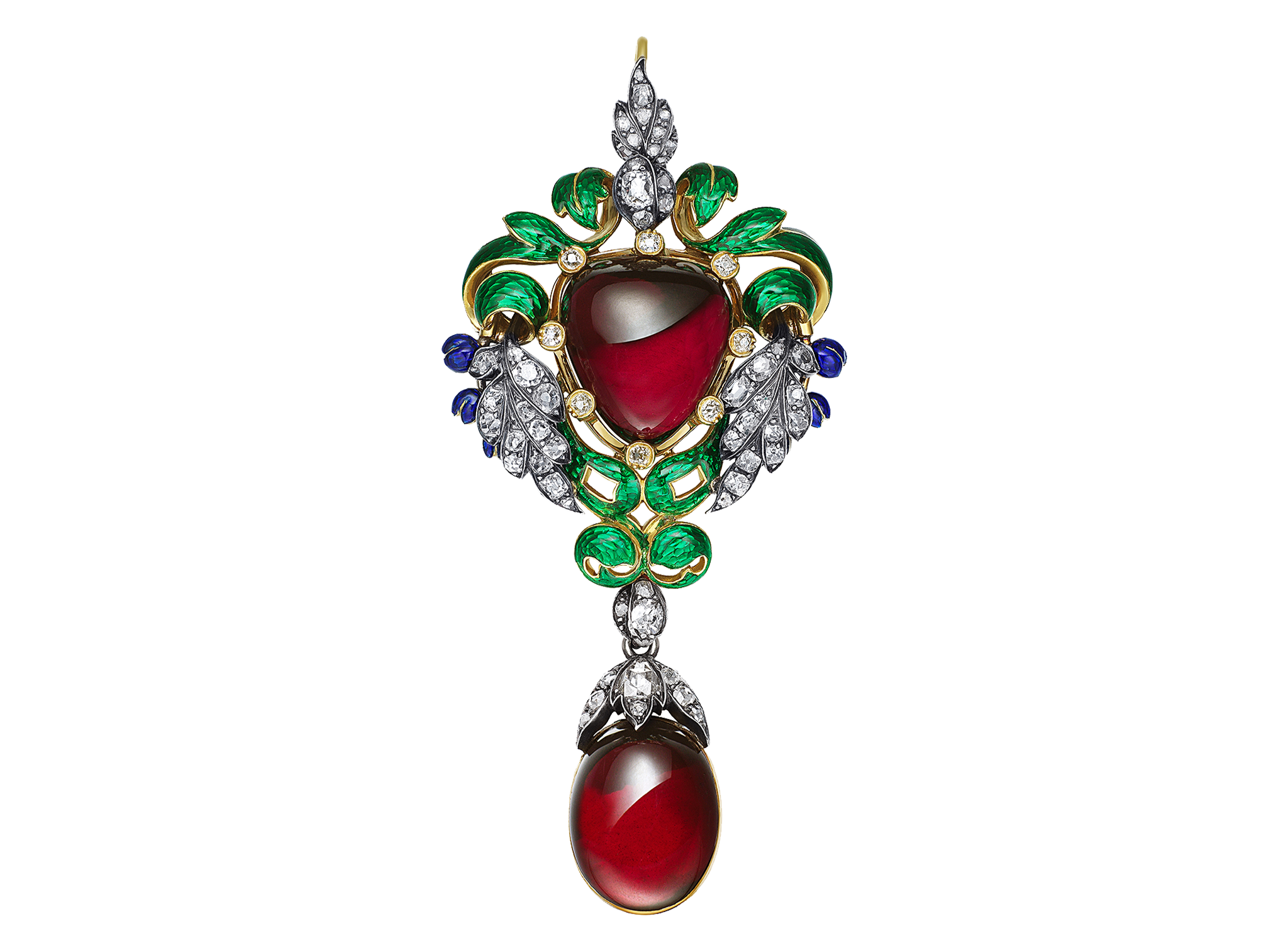 素面石榴石钻石珐琅胸针/吊坠