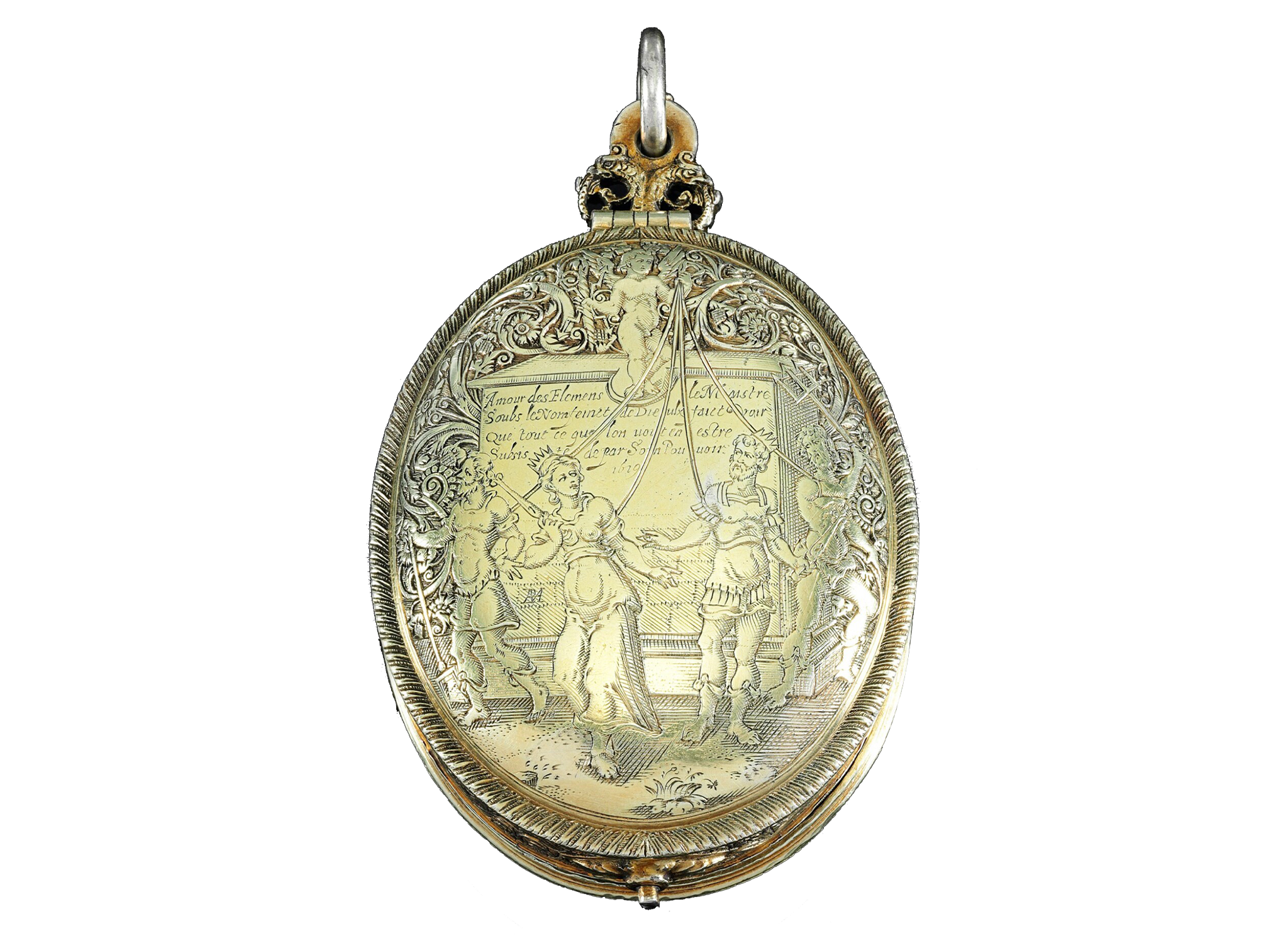 17世纪錾刻画鎏金吊坠