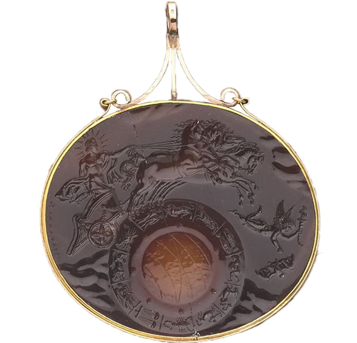 阿波罗红玉髓凹雕黄金吊坠